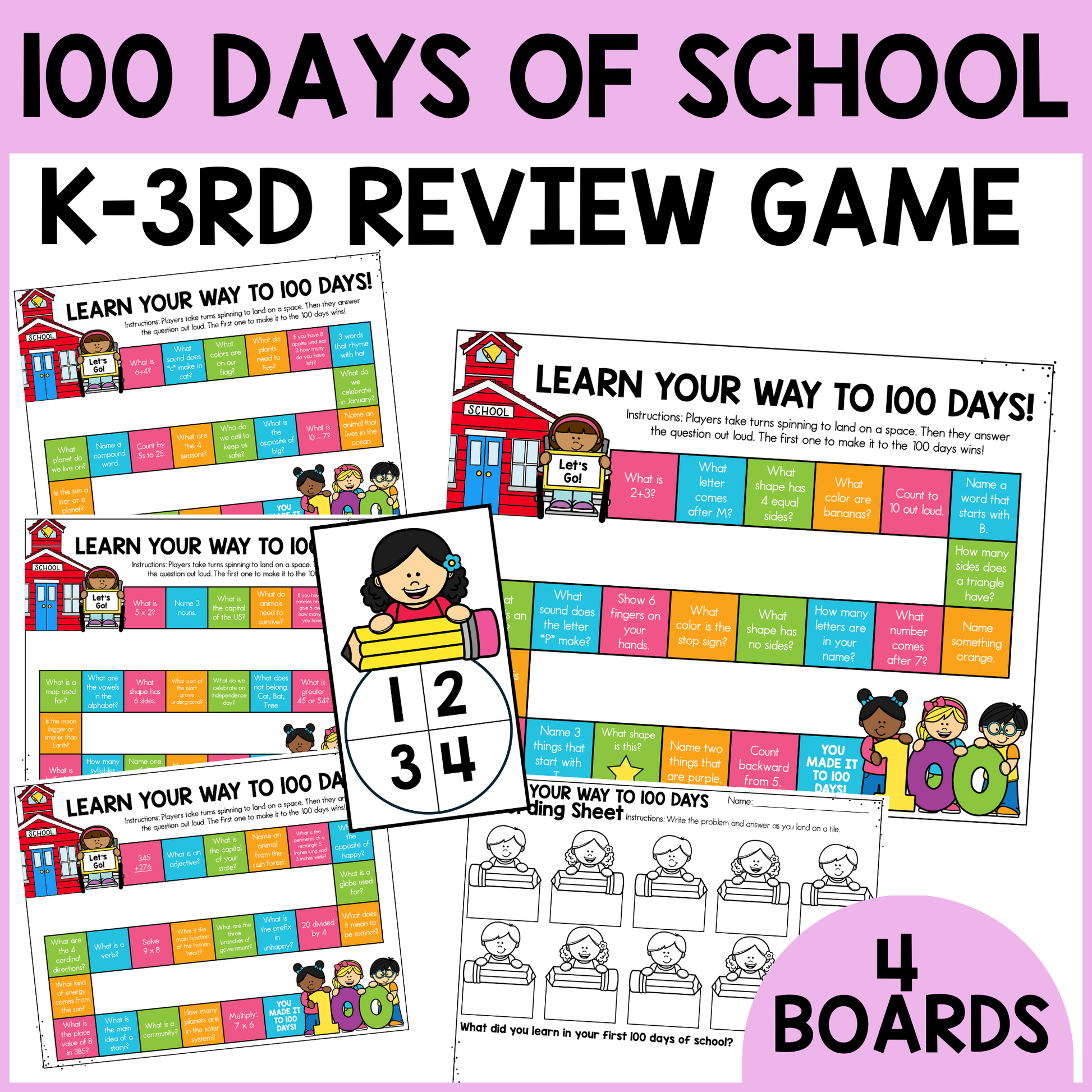 Make the 100th Day of School extra fun and educational with this semi-exclusive game set! Perfect for bloggers and sellers looking to offer an engaging resource, this general review game covers math, ELA, shapes, colors, and more! Designed for kindergarten through 3rd grade, this set includes a unique game mat for each grade level, ensuring developmentally appropriate challenges for all learners.
