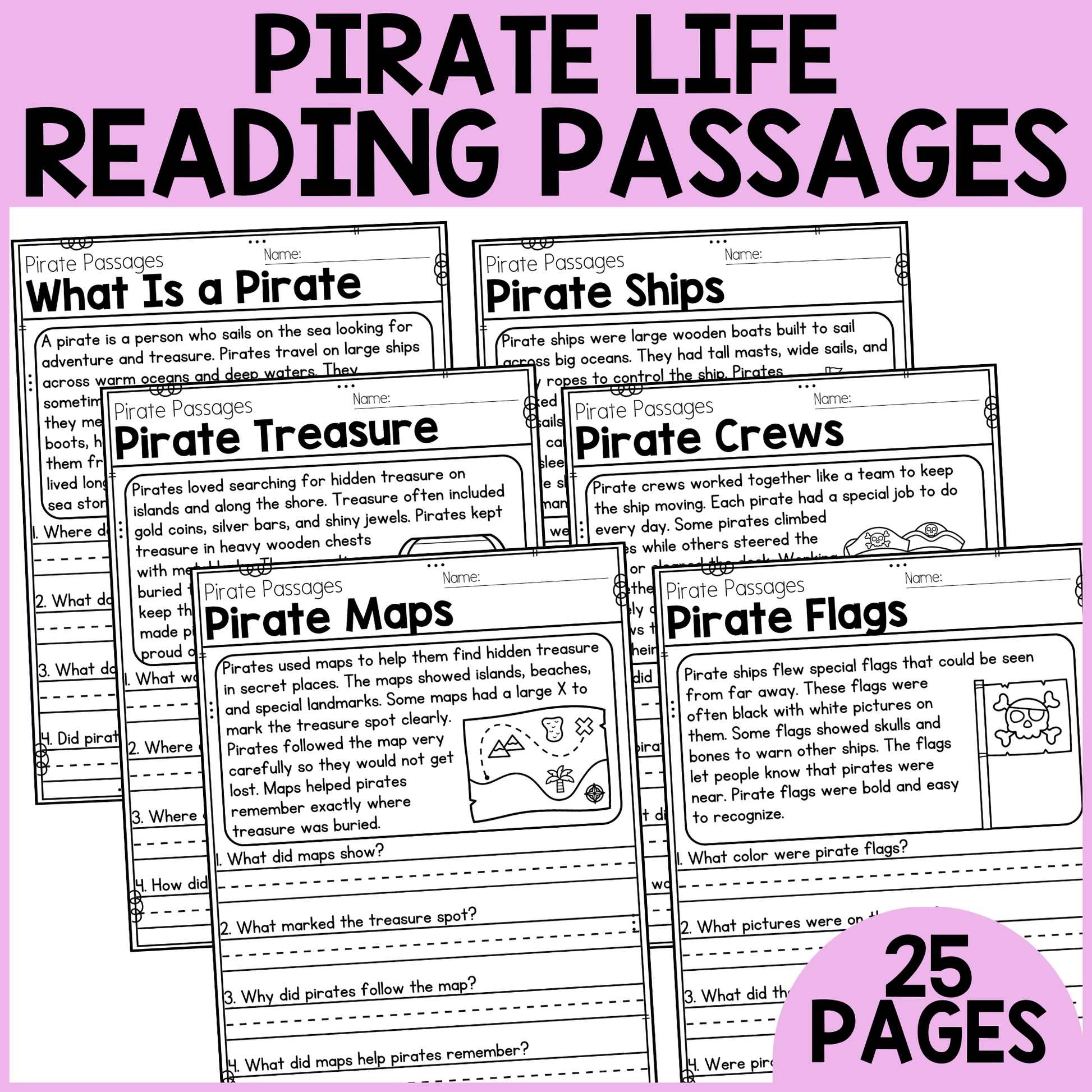 25 Reading Passages Pirate Life Themed