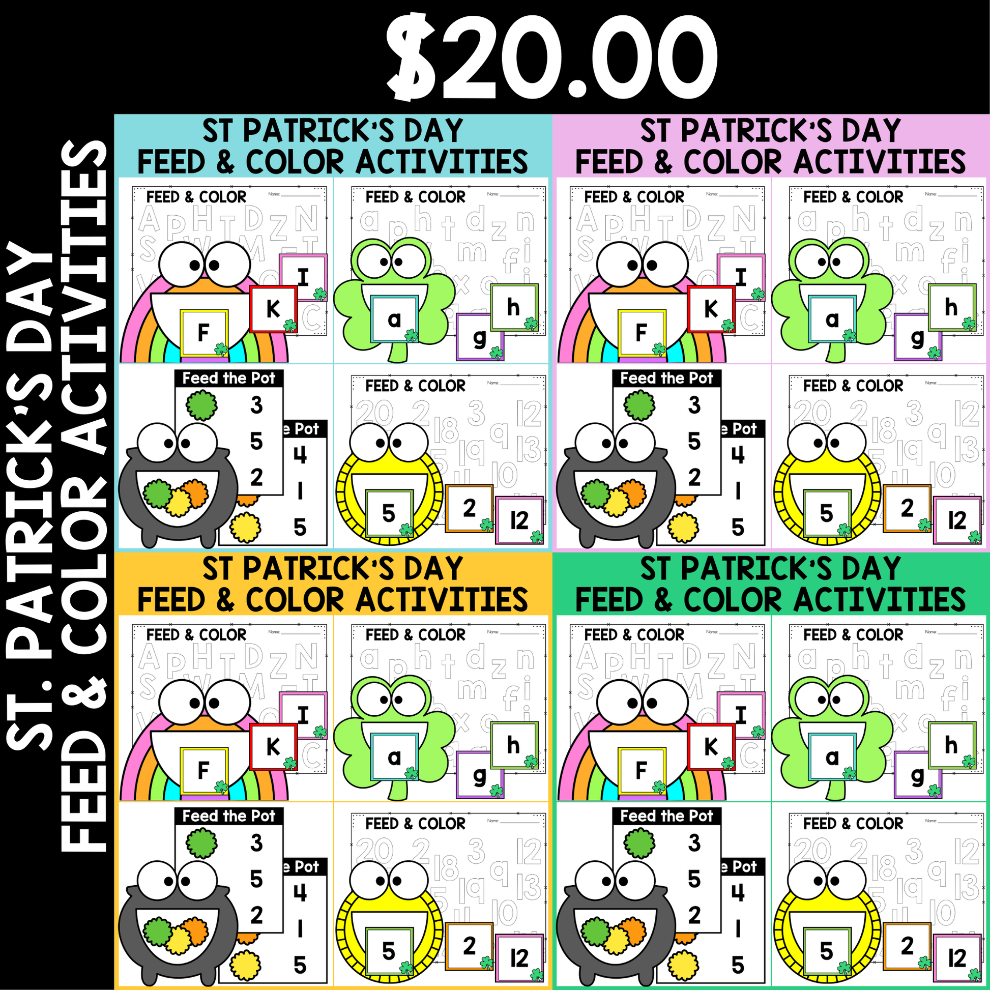 This Pot of Gold Feed & Color Activity Set is the perfect hands-on resource to engage young learners! Whether you're a blogger or a seller, this semi-exclusive pack brings excitement and creativity to kids as they practice fine motor skills, counting, and letter and number recognition, and more—all with a festive St. Patrick’s Day twist!