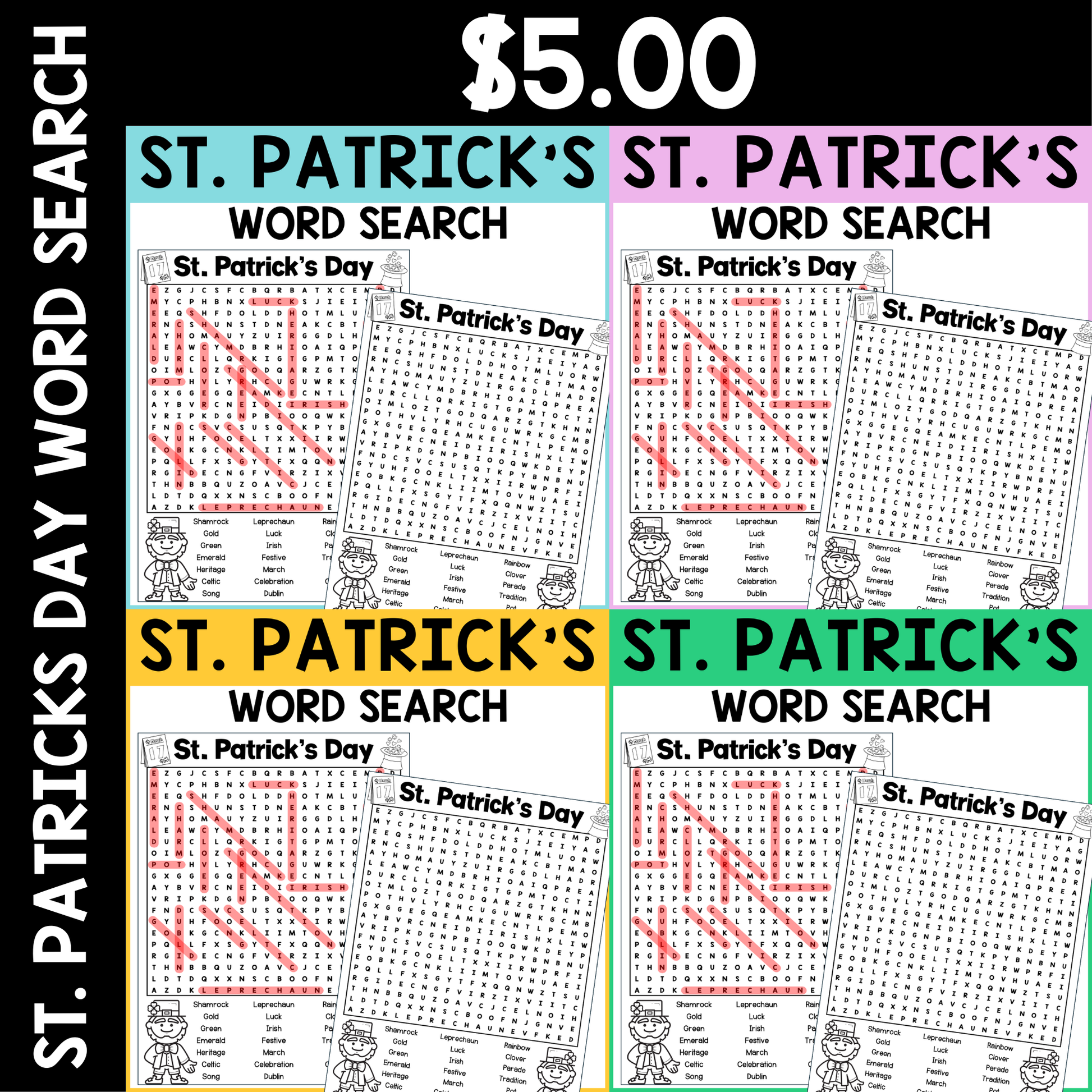 Celebrate St. Patrick’s Day with this semi-exclusive single-page St. Patrick’s Day Word Search! Perfect for bloggers and sellers looking to offer a fun and festive resource, this activity will keep kids engaged while practicing their spelling and word recognition skills in a St. Patrick’s Day-themed puzzle.