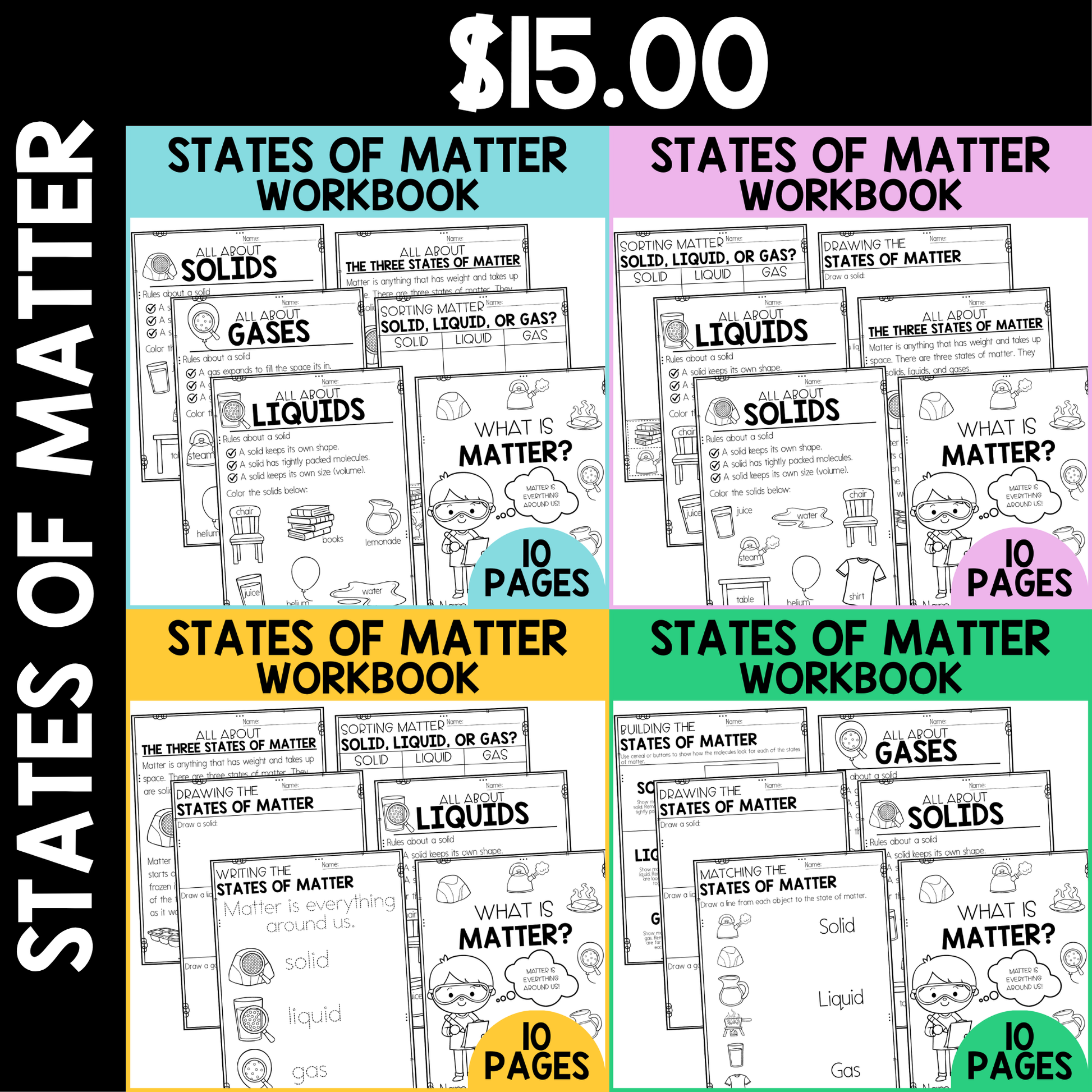 Celebrate science and spark curiosity with this fun-filled States of Matter workbook! Designed for bloggers and sellers who want to offer an engaging, educational resource, this semi-exclusive set includes 10 activity pages that help kids explore solids, liquids, and gases. Students will build a strong foundation in physical science while having fun!