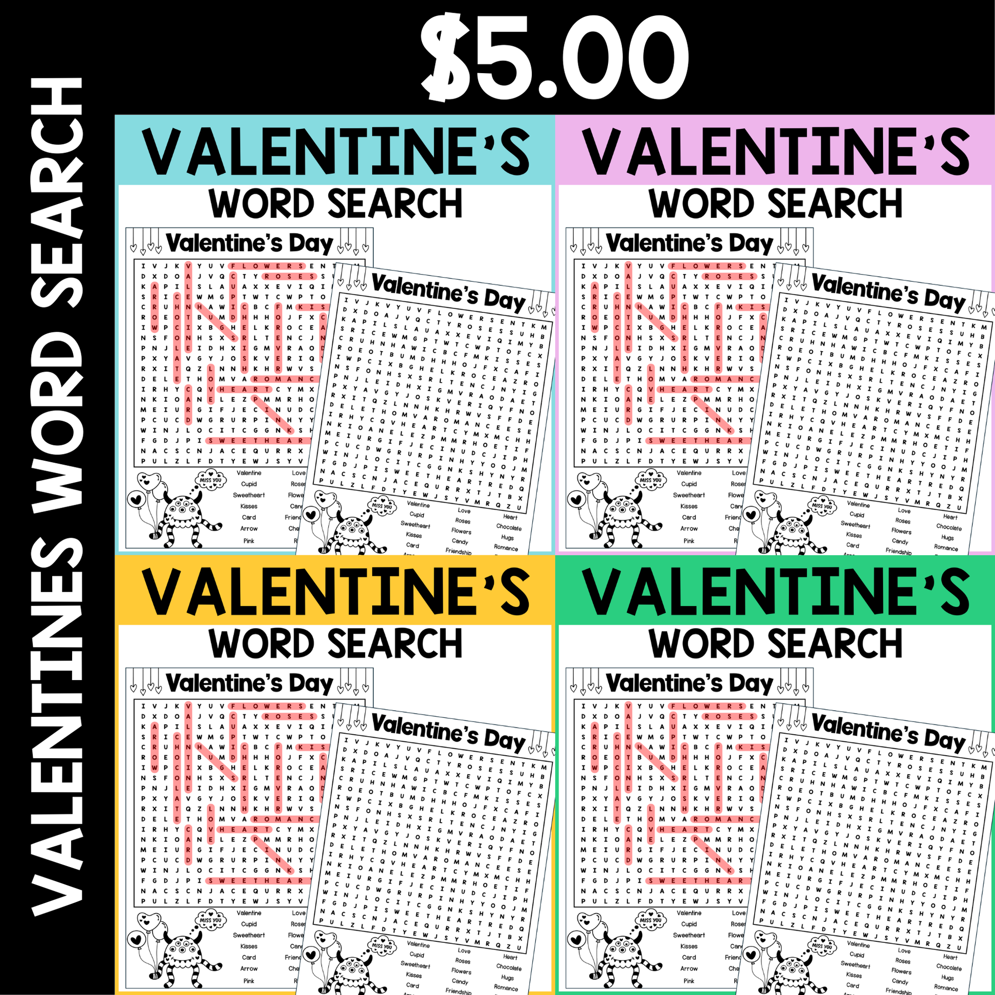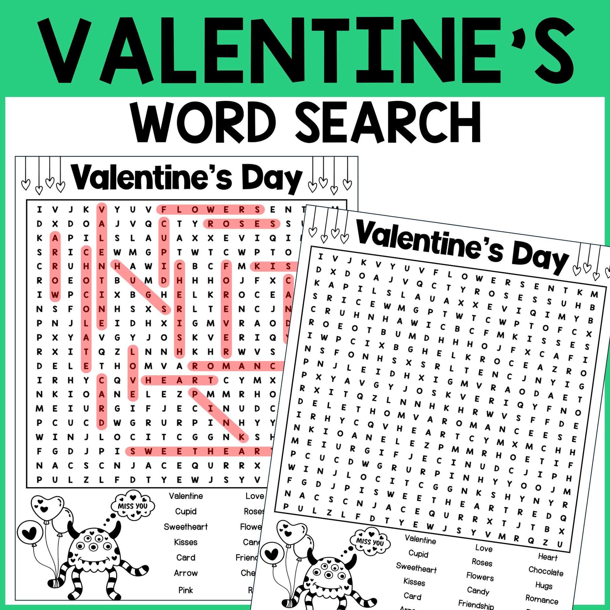 ✔ 1 PDF with the Valentine’s Day word search